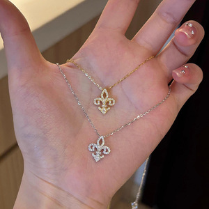 S925 스털링 실버 지르콘 루안 꼬리꽃 펜던트 목걸이 여성용 라이트 럭셔리 크로스 체인