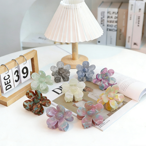 꽃 그라데이션 헤어핀 아세트산 컬러 블록 샤크 클립 우아한 데일리 업두 포니테일 클립