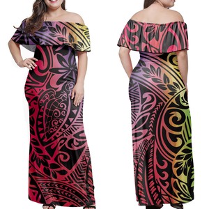 여성 우아한 드레스 플러스 사이즈 폴리네시아 사용자 정의 디자인 짧은 소매 오프 숄더 주름 드레스