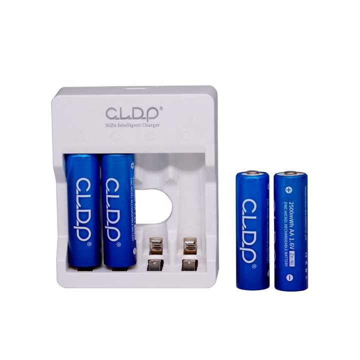 공장 가격 강력한 1.6 v Zn Ni aa 크기 충전 배터리 2500mWh 1.6 v 더블 충전식 배터리 및 충전기